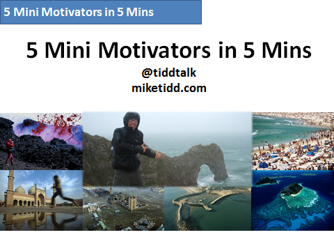 Back in November 2012, Ollie Bray tweeted me a link and planted a seed (!) to go and present at TeachMeet Dorset down on the Isle of Portland. The TeachMeet was being organised by Gary Spracklen of IPACA. I duly made the long journey down on a cold wet evening taking my good friend Nick Hargreaves of Radipole School for company. A seed was indeed planted as I came back to school the next day talking enthusiastically to Mark Lavis, my Deputy Headteacher and fellow geographer, about the evening. In February, Gillingham School hosted its own inhouse training day where Heads of Department were given five minutes to share good practice. I had the task of Mini Motivators and I thought I would share my ideas with you.